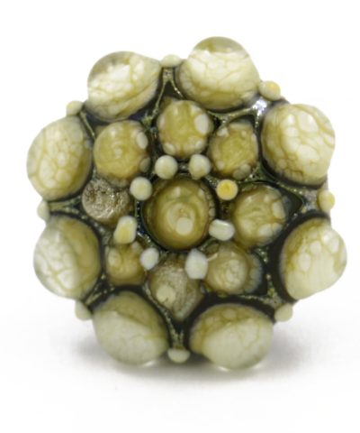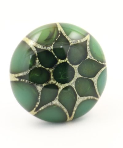 The glass part is decorated using the same technique I use for my Fenice beads: a leaf of silver is wrapped around hot glass during the working process and then oxidized until it becomes one with the base. On this assembled base, the dot decoration is applied until the desired design is achieved. Once the decoration is complete, the glass part is placed in a furnace, called a “muffola,” which controls the cooling process, gradually bringing it down to room temperature. This final step is crucial for allowing the glass to stabilize as much as possible and preventing any tensions that could affect its final quality.