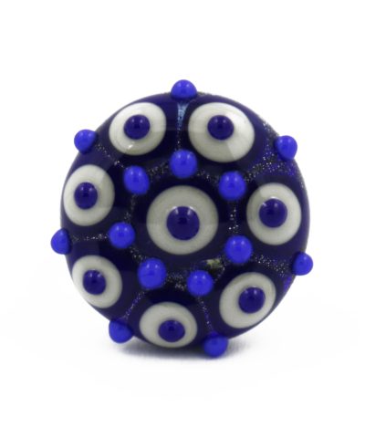 Ring with Murano glass top, handmade with lampworking technique, decorated with cobalt blue dots covered by a layer of crystal, and mounted on a high-quality stainless steel base.
