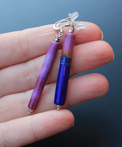 They are made with two 4cm long glass barrels and, with the stainless steel hook, the btotal lenght is approx. 5cm.