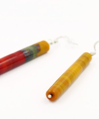 They are made with two 4cm long glass barrels and, with the stainless steel hook, the btotal lenght is approx. 5cm.